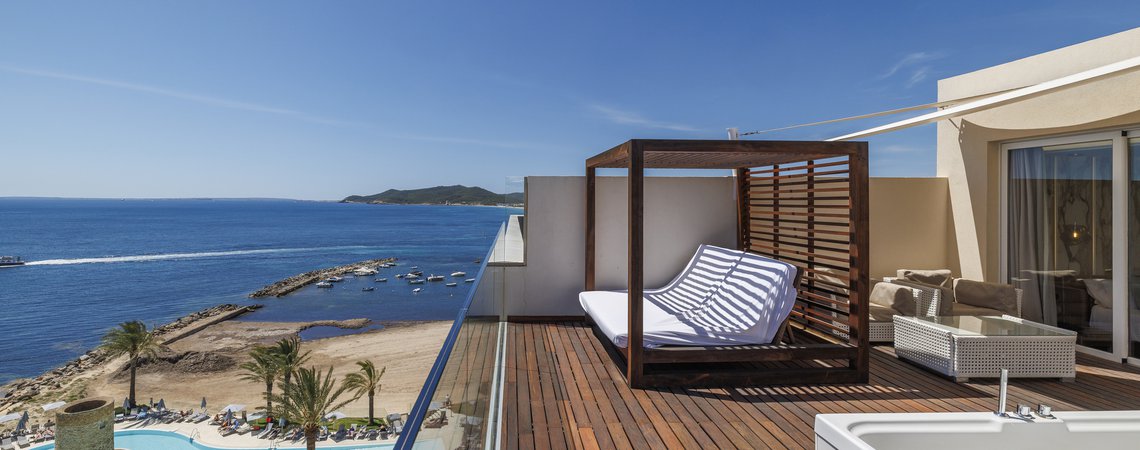 ¿Buscas un hotel de lujo en primera línea de mar y cerca del centro de Ibiza? Situado en Playa d’en Bossa, el hotel Torre del Mar brinda excepcionales vistas panorámicas al mar y a la isla de Formentera. Desconecta en un oasis de tranquilidad a solo unos minutos a pie del principal núcleo de ocio de la isla. ¡Bienvenido a las vacaciones de tus sueños!