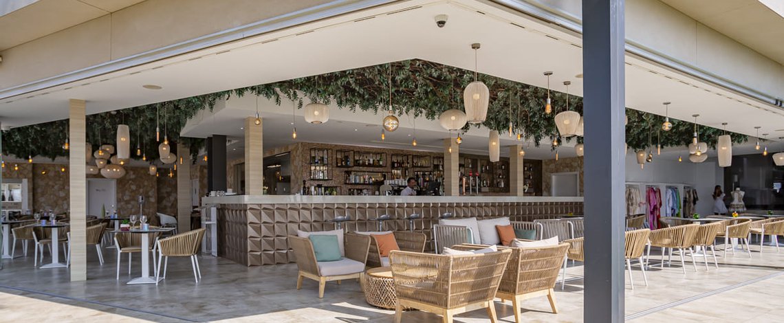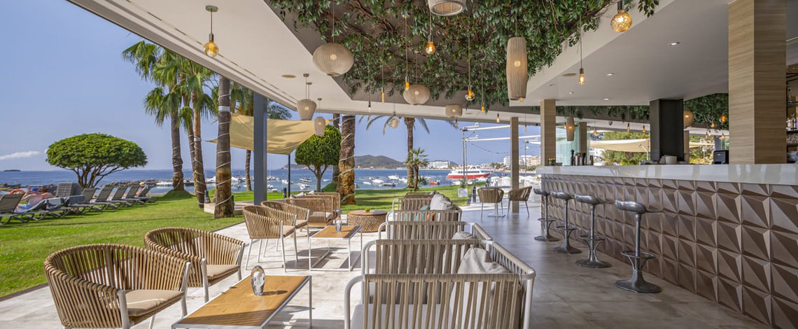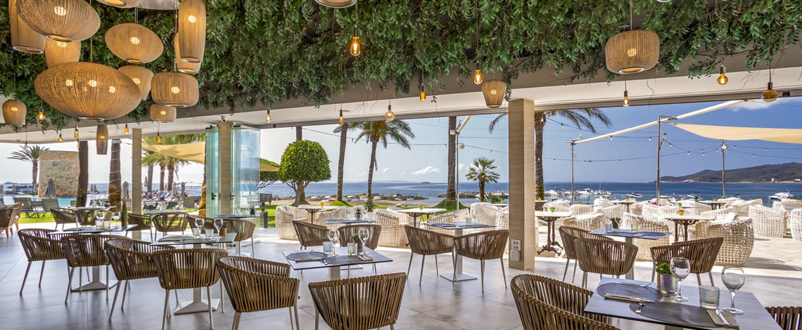 The Restobar Miramar is located outside the hotel, next to the garden with spectacular views of the sea. It is a perfect place to start the morning with an energetic late breakfast or any of our à la carte dishes, paired with a good wine or a cocktail. The opening hours are from 11:00 to 01:00 and the kitchen remains open until midnight. In addition, every noon and night you can enjoy a lunch or dinner enlivened with excellent live music.