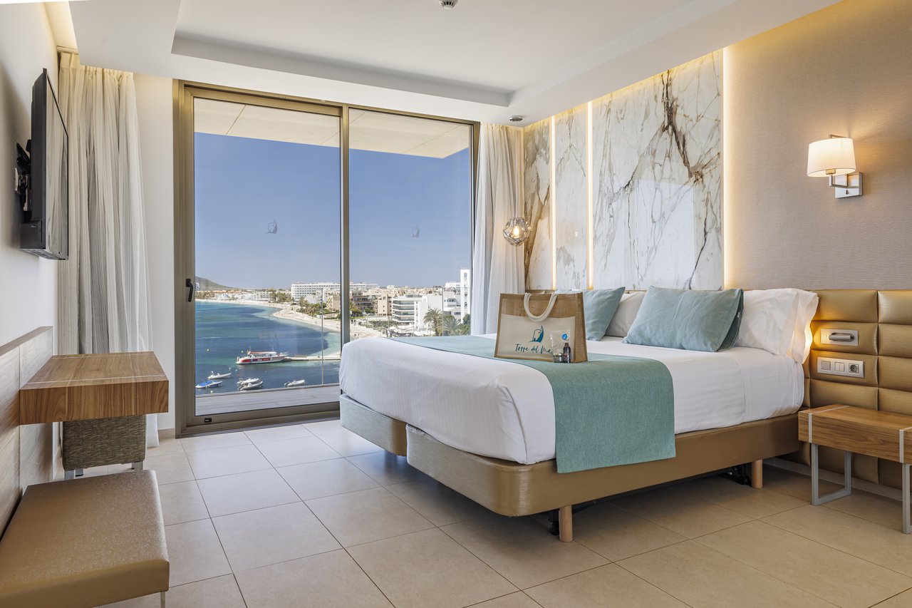 Are you looking for a hotel that offers all kinds of amenities, with an excellent location? Located Playa d'en Bossa, Hotel Torre del Mar has a new spa on the seafront, gym, outdoor pool in the form of a beach