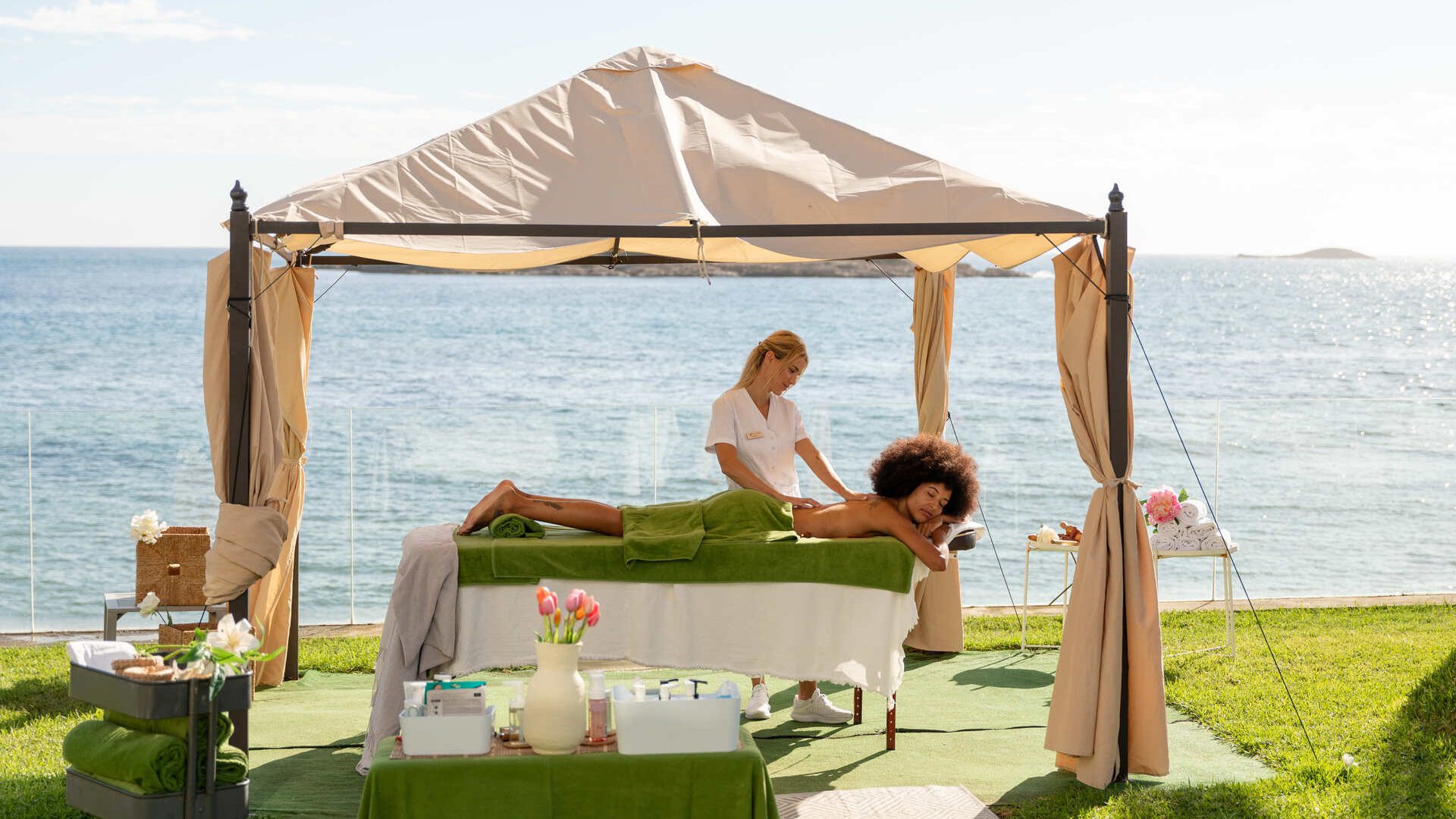 SPA with sea view, water circuit, hammam, sauna, sensation showers and relaxation area.
