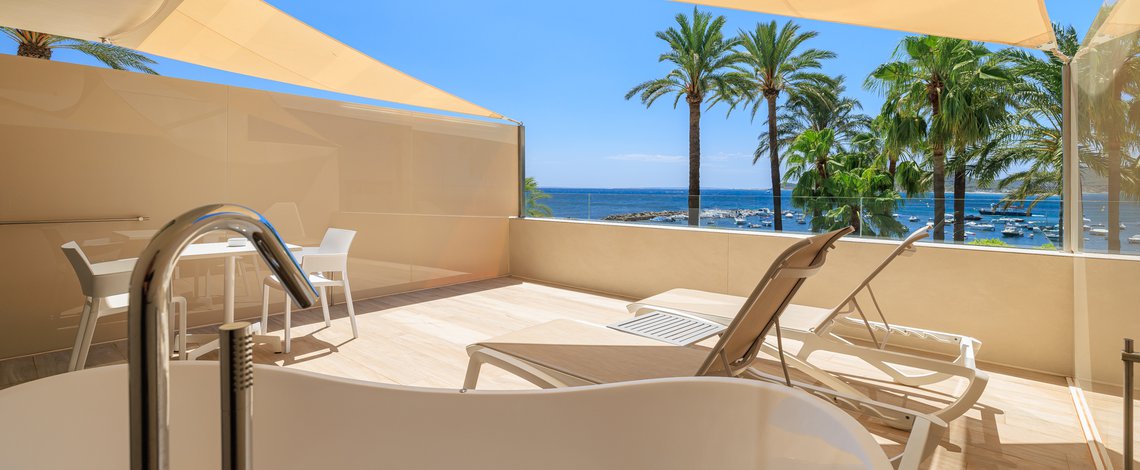 Otras habitacionesEncuentra tu espacio idealSignature vista mar, terraza y bañera hidromasajeSignature vista mar, terraza y bañera hidromasaje+ InfoReservarPremium vista mar, terraza y bañera hidromasajePremium vista mar, terraza y bañera hidromasaje+ InfoReservarJunior Suite vista marJunior Suite vista mar+ InfoReservar